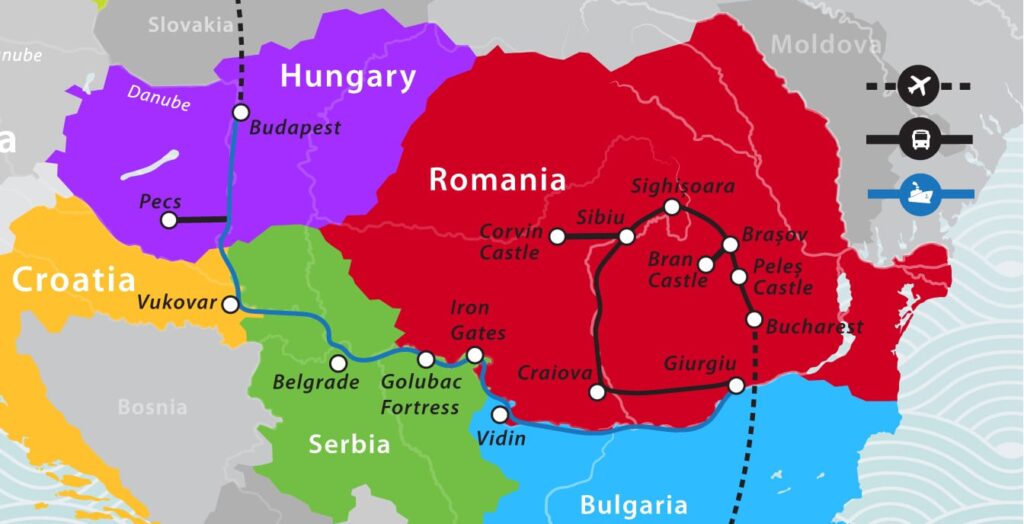 14 Day PACKAGE includes an 8 Day 7 Night EXOTIC Danube Cruise that visits 5 Countries: Hungary, Croatia, Serbia, Bulgaria, and Romania – combined with a Christmas Markets Land Tour throughout our favorite country of Romania. What really makes this Christmas Markets Tour and Cruise Special are the many small villages and ancient walled cities you will visit. Unlike the gigantic Christmas Markets in the BIG cities that have many products that are made in China, much of what you will find in the small Christmas Markets on this tour will be special, locally created Christmas items. Romania has so much to offer. It has 3 impressive castles, including our favorite castle in the world. It has many medieval walled villages AND Romania is the home to Dracula. Yes, there really was a Count Vlad Dracula in Transylvania. He was born in 1431 in Sighisoara, a small medieval walled village in Transylvania, Romania. The house where he was born and the rest of the village hasn’t changed in 800 years. You will be able to experience this ancient walled village and its Christmas markets.