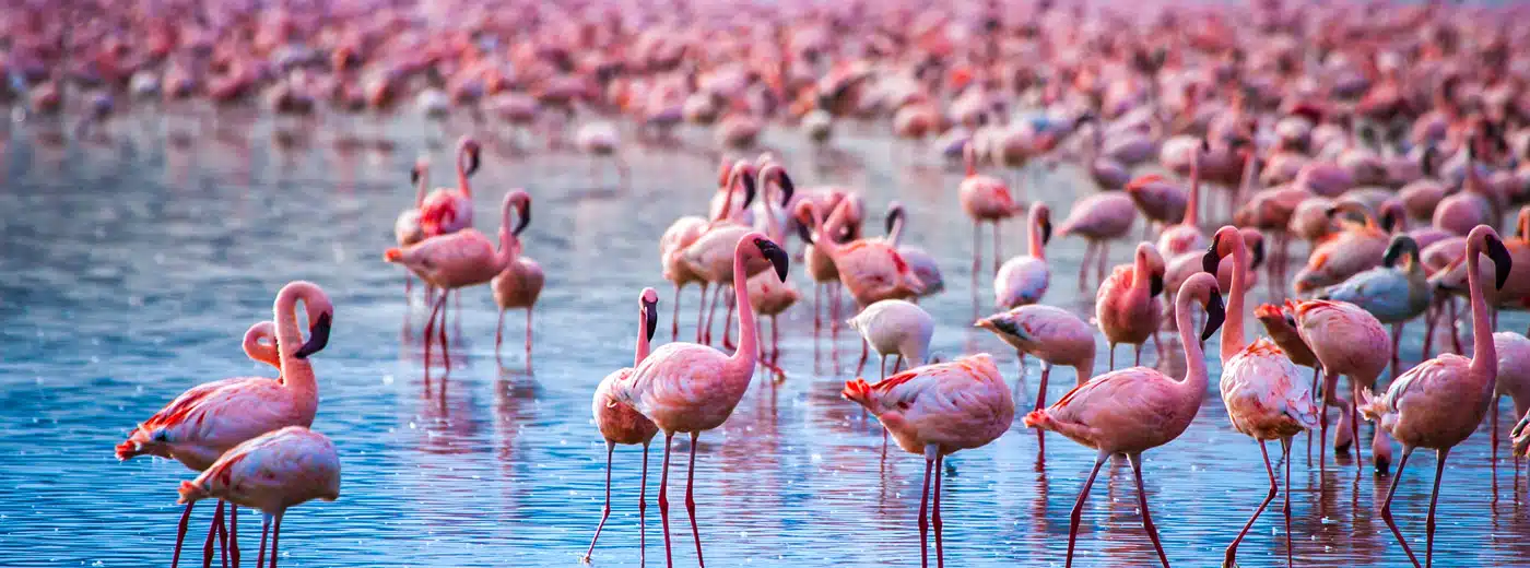 The Pink Flamingos of Lake Nakuru. We will have a wonderful safaris in Lake Nakuru. It is famous for its large population of Pink Flamingos. This area is also considered to be the first rhino sanctuary for both the black and white species. You hopefully will have a chance to see many other animals, including reedbuck, bushbuck, warthog, leopard, baboon, and giraffe.